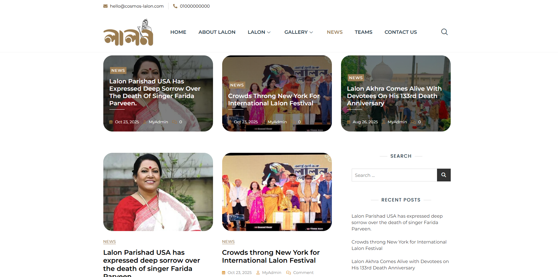 Detail Update: Executed the complete end-to-end design and development for the Lalon Biography Project, a dedicated platform honoring the life and philosophy of the legendary mystic poet, Lalon Shah. Responsibilities spanned the full lifecycle, including UI/UX design (ensuring a clean, culturally appropriate visual experience) and full-stack development (building the interactive historical timeline, content management system, and responsive frontend) to create a comprehensive digital tribute.